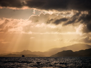 was being throw up and down and side to side. We reached the Kilchoan jetty and got off the ferry. Two vehicles were ready to