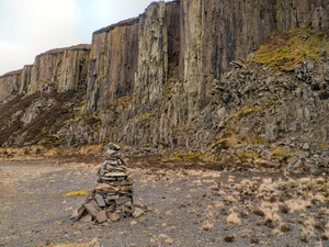 Up to now the going had been easy but ahead there was no path so I’d have to struggle through the rough ground. At Shivery Break was a small depression where I could shelter from the wind and have my sandwiches. I continued for another half mile then crossed the fence to head due north towards Byers Pike. Earlier I’d seen a Landrover parked in Glen Due but couldn’t see anyone. As I crossed the open fell a man walked up from the direction of the Landrover. |