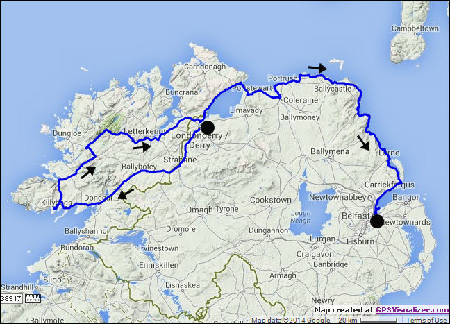 Ireland cycle ride: Derry, Killybegs, Foyle Ferry, Giant's Causeway, Belfast. Fri 13 Jun - Thu 19 Jun 2014
