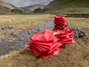 One of my objectives was to visit the Paper Bridge I saw last week. It was due to stay up till yesterday and I didn’t know if it would still be there. When I got here I was pleased to see it hadn’t all gone. Steve Messam, the artist, was there as the structure was being removed. They’d only started dismantling it today. |
