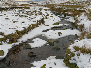 | I continued east to Dora’s Seat and crossed the wall using the deep snow either side to make the crossing easier. I followed the south side of the wall to Swinhope Head where I stopped briefly. The last time I was here was in 2003 when I rode over the summit on a cycle tour. Reaching the road didn't make the going any easier as it was compacted snow and very slippery under foot. I had to find fresh snow to walk on and continue down the road for just under a mile where I left the road to head south west to Wester Beck through old mine workings. |