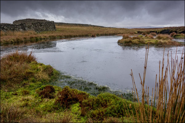 NY 82961 15177 Lat/Long: 54.531559, -2.264816 I had a dark and rainy drive north along the M6 then left it at Tebay and continued to Brough. A few miles along the A66 to the east I turned off at North Stainmore where a narrow road runs up onto the moors. The first part of this is the old original road and I passed a very large house which used to be the Punchbowl Inn. |