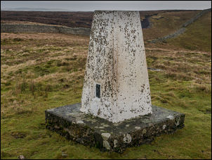 | I continued following the wall in a southeast direction and luckily the going was fairly good underfoot. I followed another quad bike track but had to leave it and head back to the wall where conditions were extremely wet and muddy. In the distance I could see my next objective, the trig post on Little Knipe summit. |