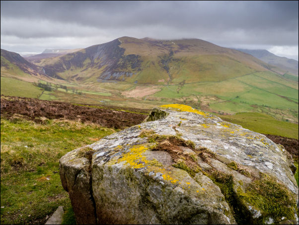 | Then a minor green trail to the left took me steeply up towards Brockle Crag. At the high point the track fizzles out but a faint path heads off left towards the ridge towards Great Cockup. |