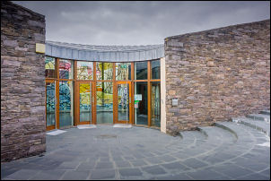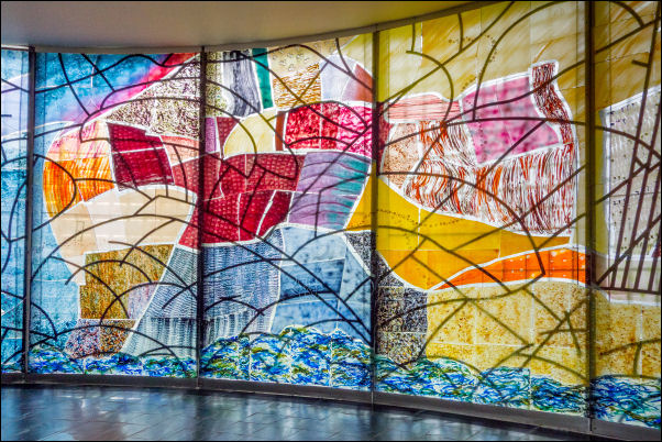 interesting building with a large coloured glass window inside. I