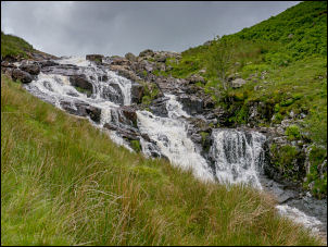 | The path was variable and some sections had been washed away during the Dec 2015 floods. It is an impressive valley to walk through but the path indicates it is not visited often. Two thirds down the valley the path crosses With Burn at a substantial wooden footbridge. The map shows paths continuing down the valley on both sides of the river but I crossed over to follow the NW side. |