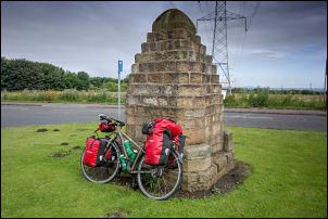 At the start of a minor road to the golf course was a cairn monument