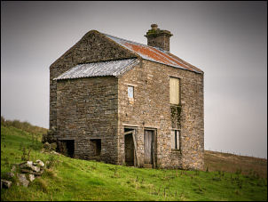 | The weather had improved so I stopped to eat my lunch. I continued up the valley then started to descend to a large building I’d seen at a distance from my walk last week. It was a two storey building with rood and door still intact. Sheepfolds were nearby and I assumed it was for the shepherds. |
