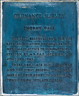 There is a plaque which reads: Ordnance Survey Thorney Gill the last observations for the retriangulation of Great Britain were made at this trigonometrical station by Mrs AP Joyce on the 4th of June 1962 there are 11,678 such stations and the first observations were made at Cold Ashby in Northamptonshire on 18th of April 1936. The post is not quite at the highest point and it is interesting to note that the Ordnance Survey map calls the hill Limes Head. |