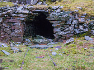 | I could see the rubble heaps ahead and climber to the first where I stopped by an old heading into the hillside which still had rail tracks at the entrance. I was last here in 2008 and made the same comment about the rails. I peeked inside with my headtorch but the smell of a decomposing dead sheep meant I didn’t go in. |