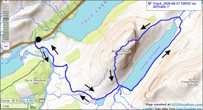 Loch Laggan via Lochan Earba & over Bennein Shuas, Scotland.