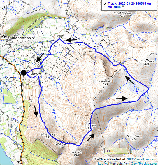 Ullock Pike, Carlside Tarn, Skiddaw, Blake Hill, Hare Crag, Dash Beck, Barkbeth, Cumbria. Tue 29 Sep 2020