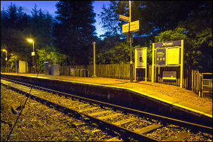 The railway platform was illuminated but nobody was about. There