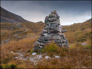 Cairn by the path near the high point. |