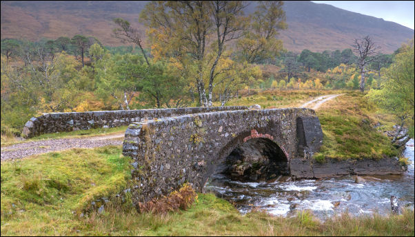 Easan Dorcha and crossed the footbridge to the cabin. |