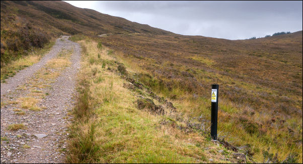 Heading up the Coulin Pass with cable marker on the right. |