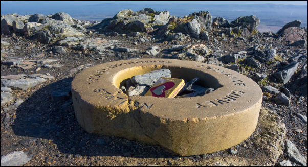 Summit Ordnance Survey trig point marker ring. |