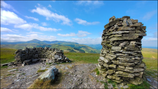 Broom Fell cairn and stone shelter. |