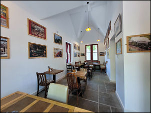Railway Station cafe to take a photo of the replica train. |