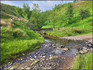 Gill I crossed rough ground through long wet grass to cross a