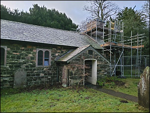access road. The church now has scaffolding around the eastern